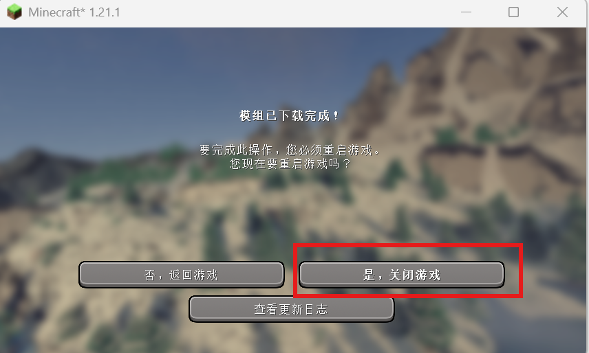 4.下载完成后,它会提示您重启,请点击是,关闭游戏。